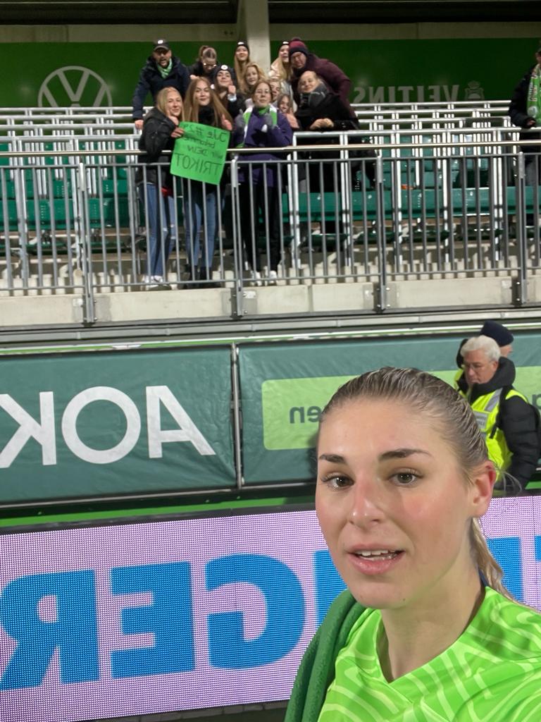 Der eigentliche Höhepunkt stand aber erst nach Abpfiff auf dem Programm. Nachdem sie von den Mädels minutenlang lautstark beim Auslaufen gefeiert wurde, trat Jule Brand unter tosendem Applaus ihren Weg zu uns an. Gekrönt wurde der Besuch des Shootingstars durch ein Selfie mit der ganzen Mannschaft. Mit diesen tollen Eindrücken verabschiedet sich das Team der B Juniorinnen in die wohlverdiente, aber kurze Winterpause. Denn Mitte Januar geht's dann schon wieder bei der nächsten Runde beim Cup der Region Hannover weiter.