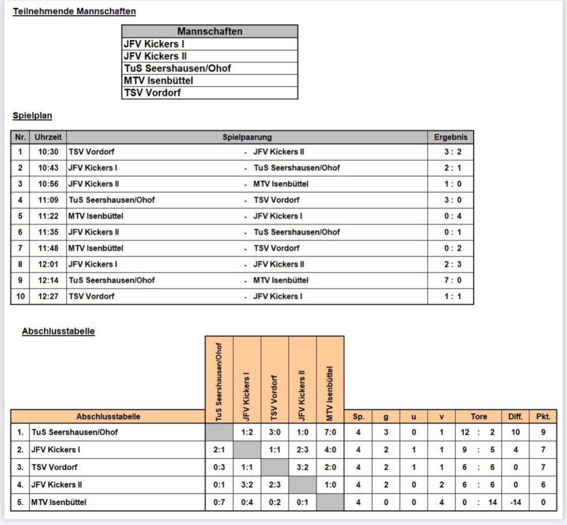 | JFV Kickers - TuS Seershausen/Ohof | 1:2 |