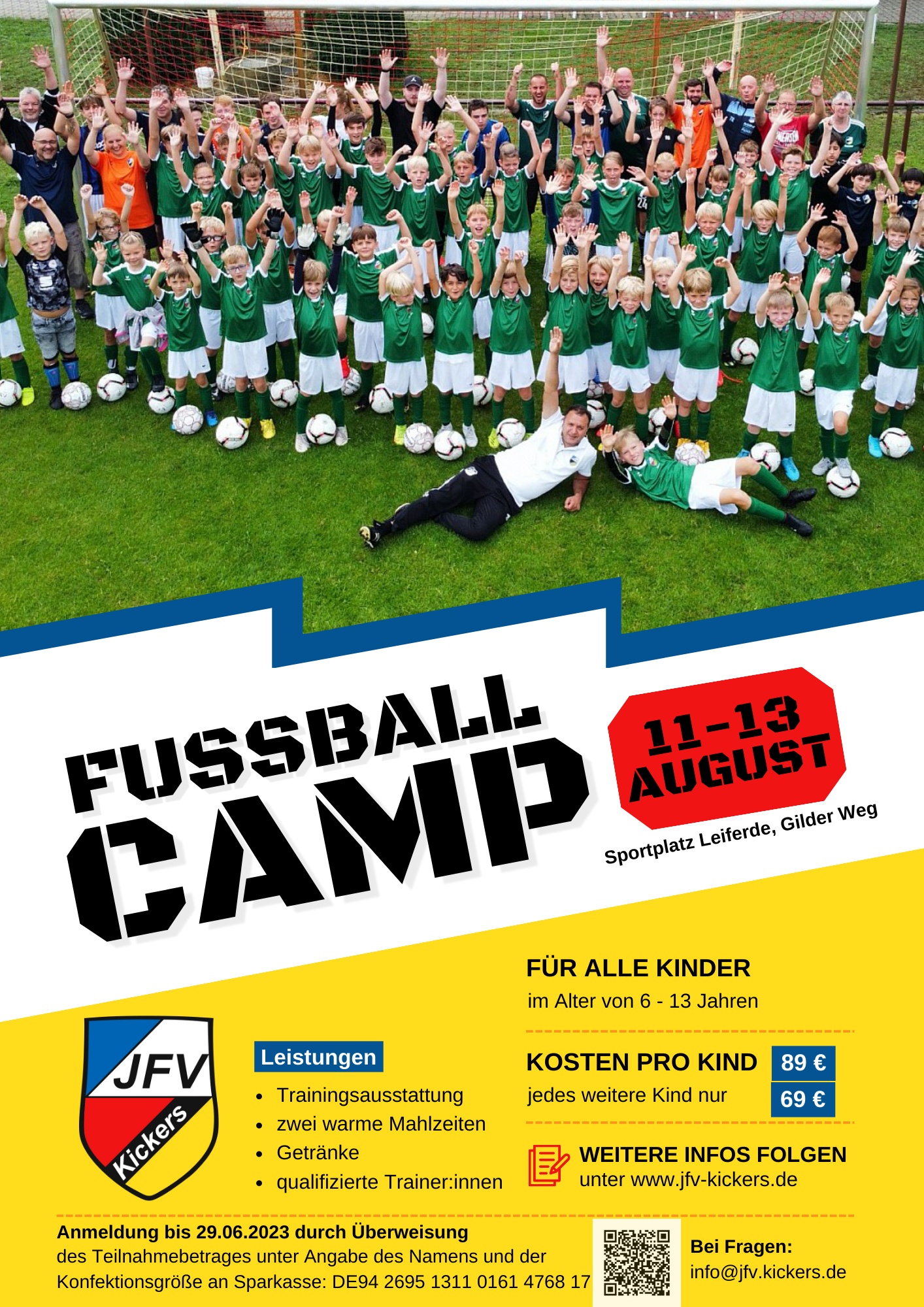 JFV Kickers Fußballcamp 2023 für alle Kinder im Alter von 6-13 Jahren