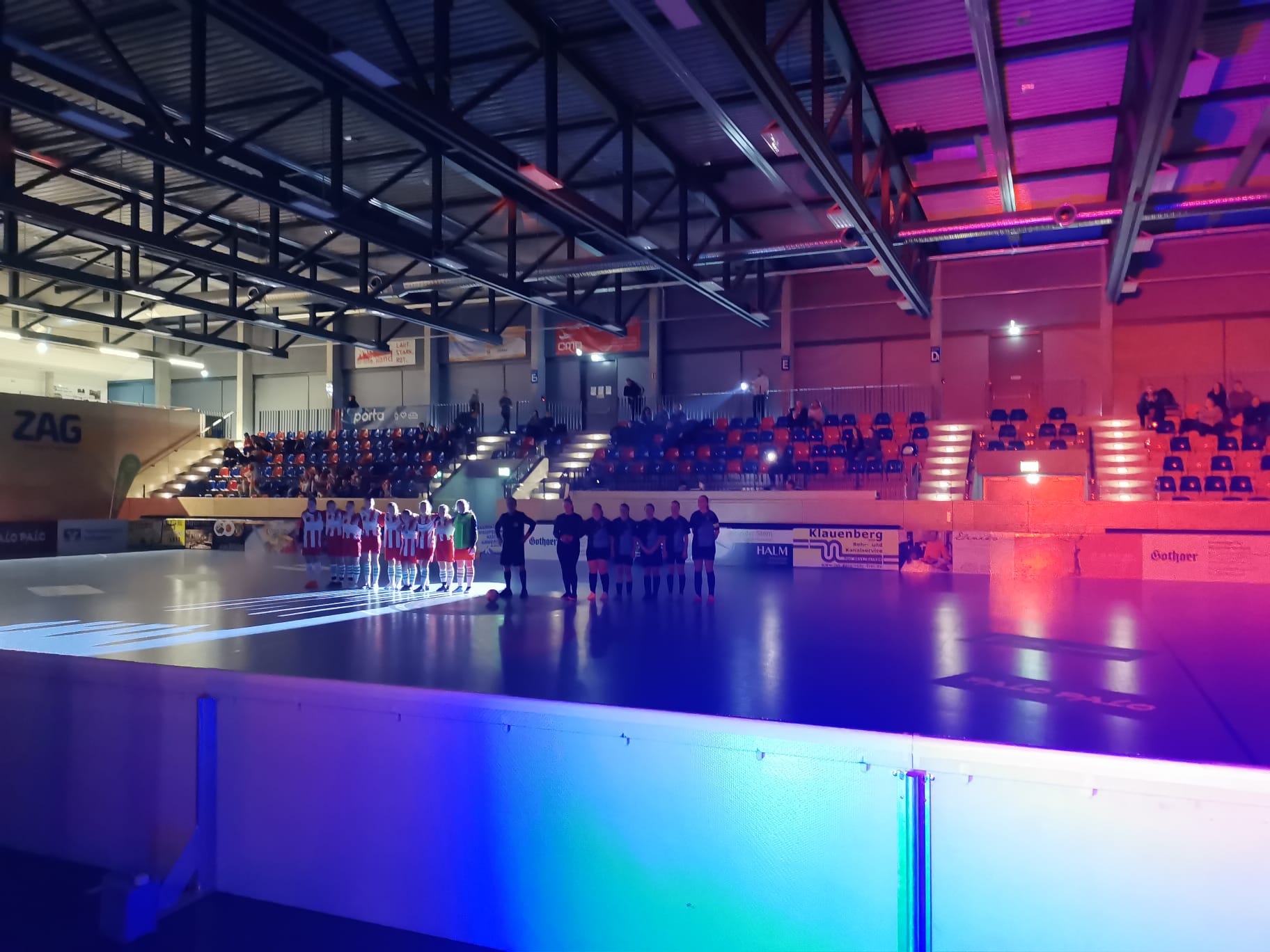 Im Finale wartete nun wieder die erste Mannschaft von Hannover. Beim Endspiel liefen die Mädels zu einer spektakulären Laser-Show ein und die Aufregung war groß. Trotz gutem Beginn konnten wir nach einiger Zeit kräftemäßig nichts mehr zusetzen. Folglich lagen wir wenig später mit 0:2 zurück. Mit einem letzten Aufbäumen gelang uns der Anschlusstreffer. Die letzte Minute wurde dann völlig verrückt. Zunächst traf Lilli mit einem Distanzschuss den Pfosten, kurz vor der Sirene knallte Elses Schuss ans Lattenkreuz. Dann war Schluss und nach kurzer Enttäuschung war das Team sehr stolz auf das Geleistete.