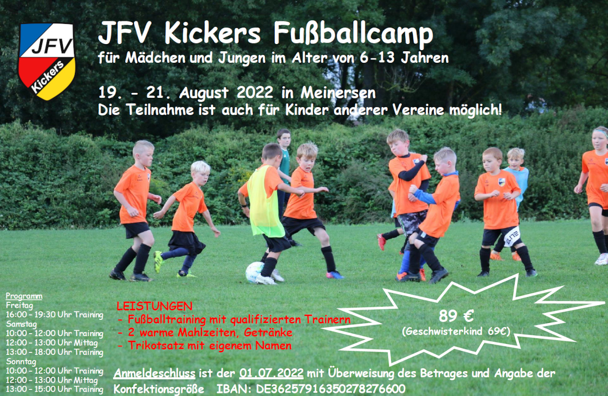 JFV Kickers Fußballcamp 2022 für Mädchen und Jungen im Alter von 6-13 Jahren.