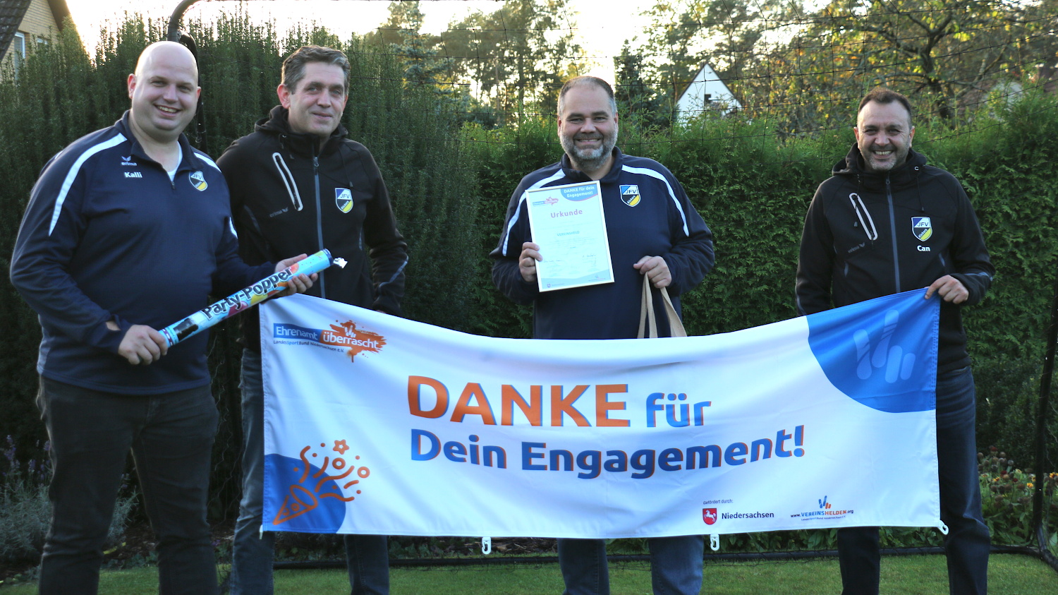 Gestern Abend überraschten Can, Kalli und Severin vom JFV Kickers Vorstand unseren langjährigen Fotografen, Social Media und Homepage Verantwortlichen Carsten Elvers im Rahmen der Aktion "Ehrenamt überrascht - Danke für Engagement".