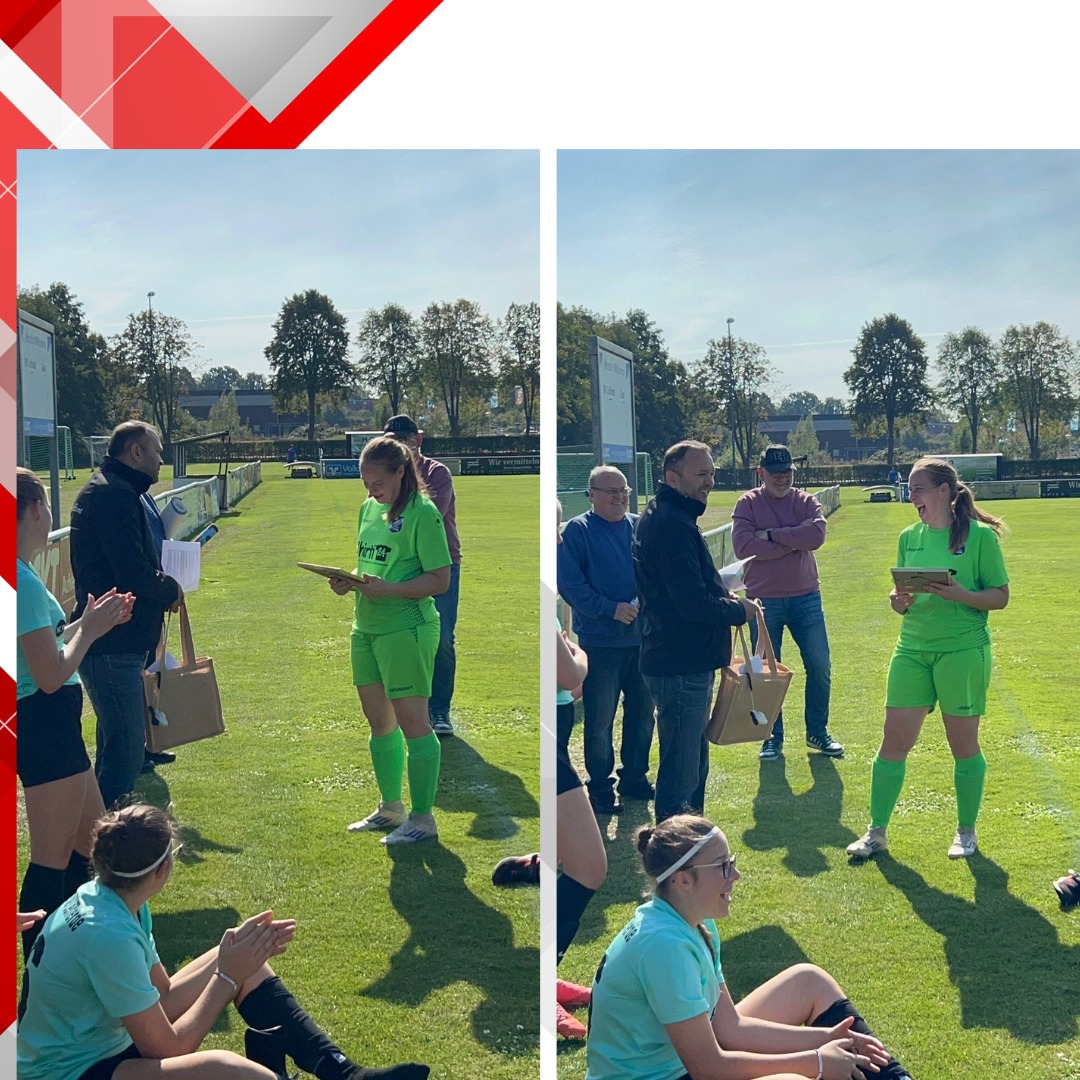 Nach dem Spiel wurde sie völlig überraschend im Rahmen der Spielanalyse als Vereinsheldin ausgezeichnet – und ihr Blick war unbezahlbar, als plötzlich ihre Kinder, ihr Mann und sogar ihr Papa auftauchten.